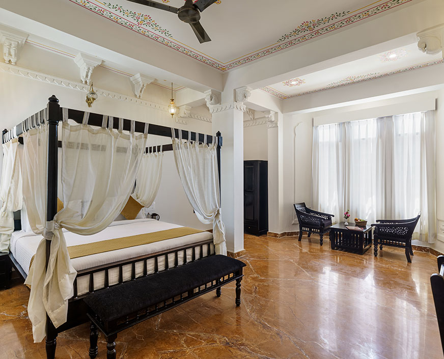 Welcome to a realm of refined indulgence – our Super Deluxe room in Udaipur. As you step into this exclusive haven, you're greeted by an atmosphere that transcends the ordinary, where every detail is a brushstroke in the canvas of luxury. The Super Deluxe Room is more than accommodation; it's an immersive experience designed to redefine your expectations of opulence and comfort.